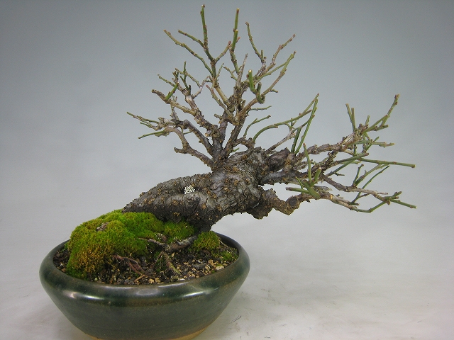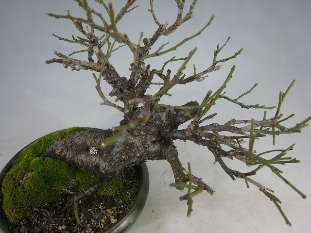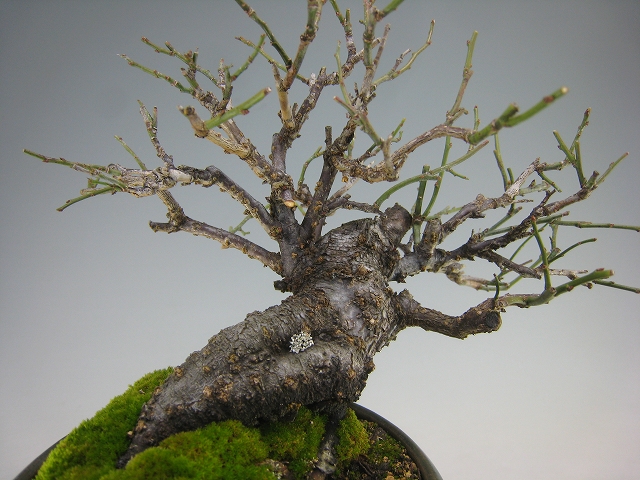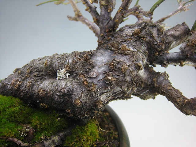 ■肌も荒れ始め甲州野梅らしい小枝も解れ。持ち込みも古くお勧めの盆栽です、花芽は有りませんが軸も太りそろそろ付きそうです。