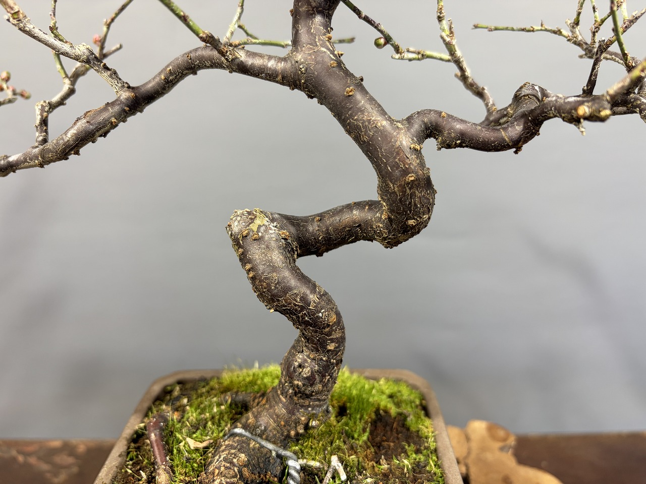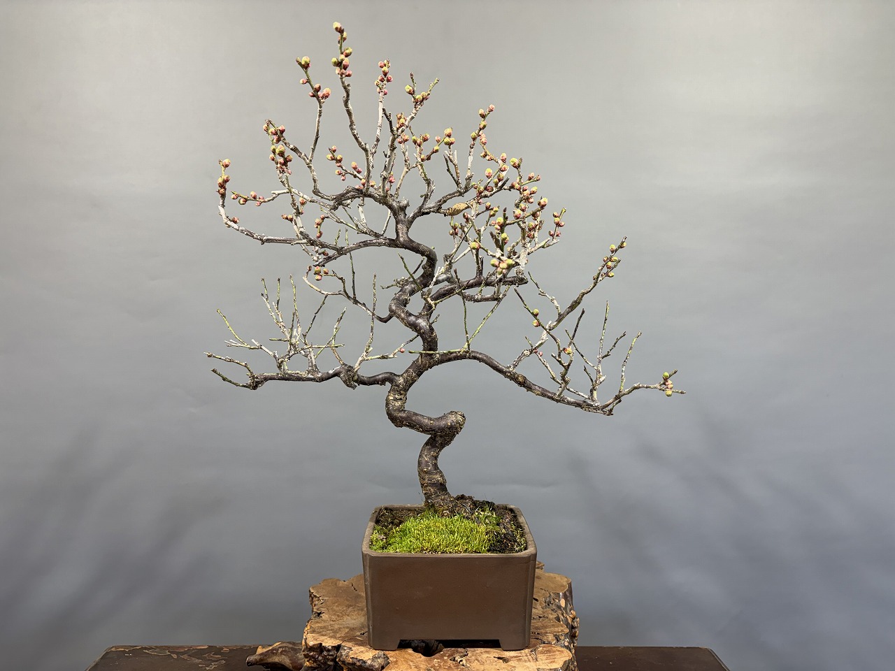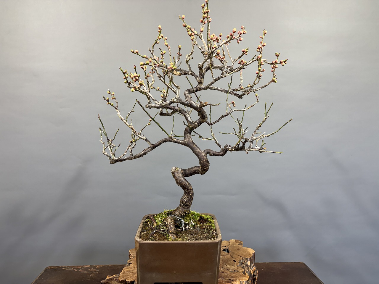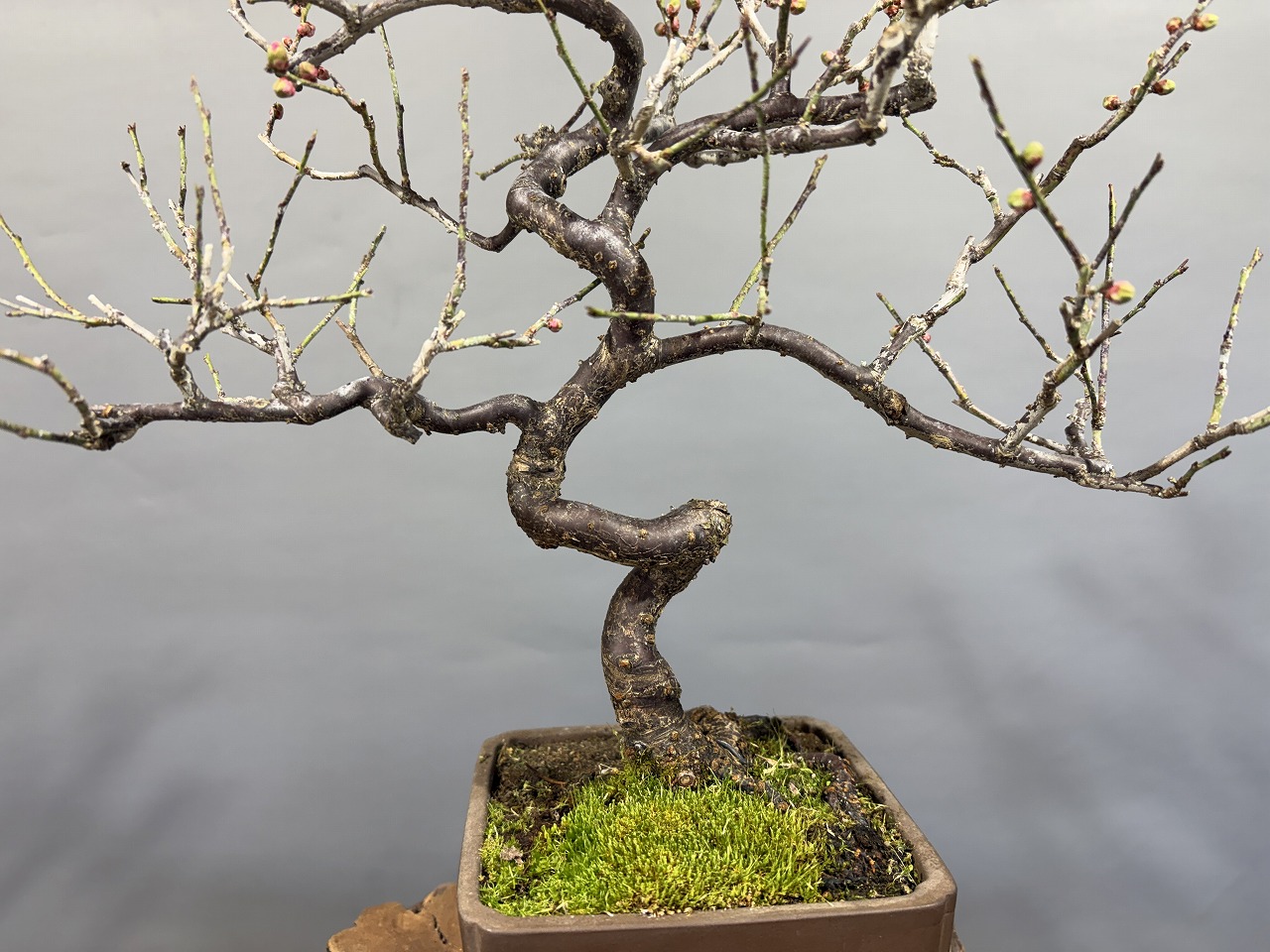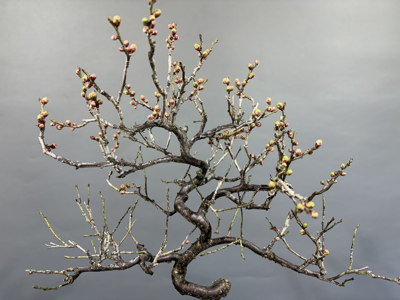 甲州野梅のピンク花は大変珍しく、希少価値の高く盆栽としては数が非常に少ない樹種です。