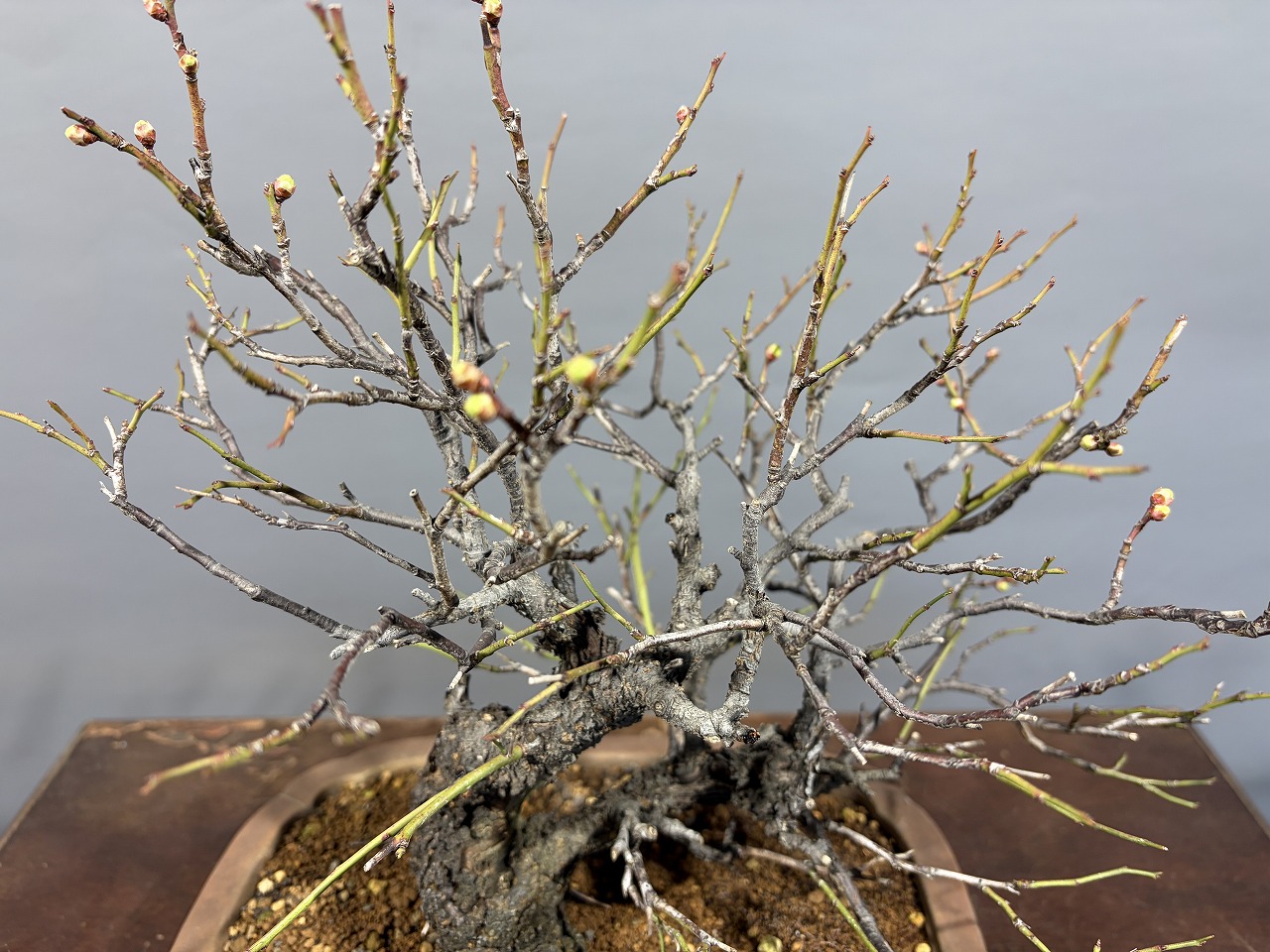 ▽甲州野梅は、希少で高貴な品種の盆栽です。